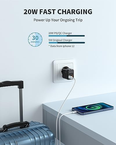 – **Safety First:** The adapter features built-in safety mechanisms including over-current protection, short-circuit protection, and surge protection, giving you peace of mind while charging your devices abroad.
